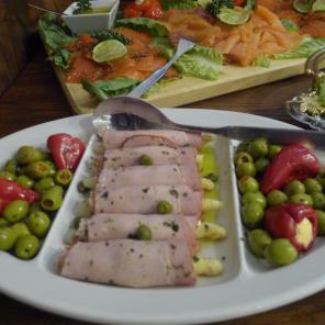 Einmal im Monat bieten wir ein reichhaltiges Sonntagsfrühstück in Buffetform an. Dies beinhaltet hausgerösteten Kaffee satt, Tee, ein Glas Orangensaft, Butter, hausgemachte Marmelade, Honig, Früchte mit Joghurt, diverse Wurstwaren (Schinken, Mettwurst), verschiedene Käsesorten, Rührei, gekochte Eier, Lachs, Antipasti, unterschiedliche Salate, Tomaten mit Mozzarella sowie weitere hausgemachte Köstlichkeiten.
