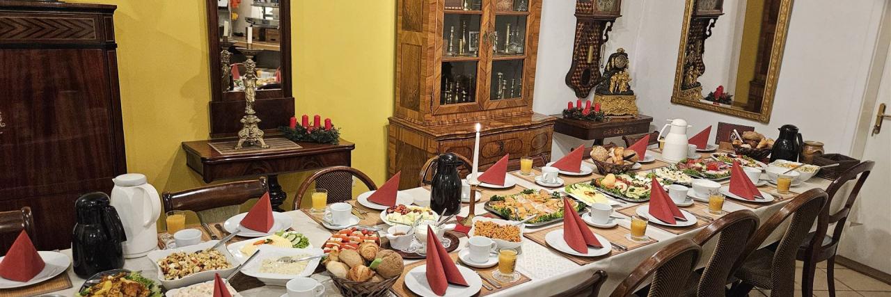 Die Teilnahme am Sonntagsfrühstück muss grundsätzlich immer vorher reserviert werden. Bitte teilen Sie uns auch gleich mit, wenn sich unter Ihnen Personen mit einer Gehbehinderung befinden bzw. Kinder und deren Alter. Wenn sich an der von Ihnen angemeldeten Personenzahl im Laufe der Zeit etwas ändert, haben Sie die Möglichkeit, uns bis zu 2 Tage (bis 16 Uhr) vor dem Event die Änderung mitzuteilen. Sollten wir keine Information erhalten, müssen wir Ihnen leider einen Unkostenbeitrag von 10 € pro Person in Rechnung stellen.