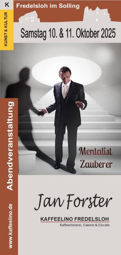 JAN FORSTER liest, hört und spürt Gedanken, ahnt und sieht vorher, was passieren wird, beeinflusst Zuschauer so, dass sie tun werden, was er will, obwohl sie glauben, nach freiem Willen zu handeln. Verdammt unheimlich - gäbe es nicht so viel zu lachen dabei! Zuschauer werden noch Tage daran denken. Und ganz nebenbei erleben alle eine phänomenale, rekordverdächtige Gedächtniskunst...