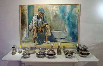Meine Bilder sind sehr unterschiedlich, eher gegenständlich und ich arbeite in verschiedenen Techniken
