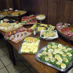 Einmal im Monat bieten wir ein reichhaltiges Sonntagsfrühstück in Buffetform an. Dies beinhaltet hausgerösteten Kaffee satt, Tee, ein Glas Orangensaft, Butter, hausgemachte Marmelade, Honig, Früchte mit Joghurt, diverse Wurstwaren (Schinken, Mettwurst), verschiedene Käsesorten, Rührei, gekochte Eier, Lachs, Antipasti, unterschiedliche Salate, Tomaten mit Mozzarella sowie weitere hausgemachte Köstlichkeiten.